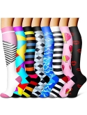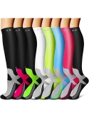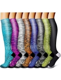 AMAZING EFFICACY-Our Compression Socks work by creating apressure gradient(using graduated compression of 15-20 mmHg)which helps to push oxygen-poor blood out of the feet and legs,and back to the heart.More blood pumping means more Healthier legs and less pain+swelling.Remove stress and stimulate every cell,reduce fatigue,soreness,cramping and prevent Varicose veins at the same time Ensure the healthy functioning of your circulatory system.Keep your legs feel fresher and more energized.
