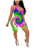 Features: tie dye print, sleeveless, halter neck, deep v neck, backless, cutout, bandage, one piece short jumpsuit playsuit romper, casual short jumpsuit