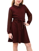 Features: Casual Vintage Style, Peter Pan Collar Design, Sheer Contrast Mesh Long Sleeve, Fit and Flare Elegant Dress, Back Zipper, Knee Length, No Lined. And one removable Delicate Waistband that can be used to tie a bow.