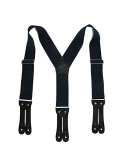 Elastic 2 Inch Wide Premium Work Suspenders by Welch Material is hopsack elastic Y-back style with leather back patch and button-ends Silver metal adjusters Made in the USA
