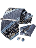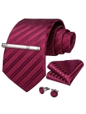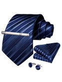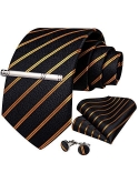 PURCHASE CONTAINSSilk Striped Necktie + Woven Pocket Square + Cufflinks + Silver Tie Clip+ Gift box.It's Proper gift for Father's Day,Christmas Day,Valentine's Day,Thanksgiving Day,Anniversary,birthday ect