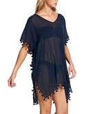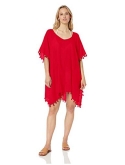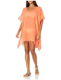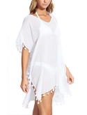 STYLE FEATURES - Loose fit kaftan cover up with tassel trim. The perfect lightweight swimwear cover up available in seasonal colors.