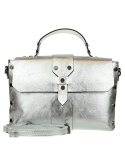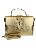 Genuine leather satchel messenger bag with flat studs on the front and on the back.