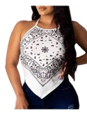 This cute and sexy summer top is feature with backless,cropped length,paisley print.