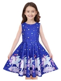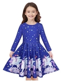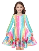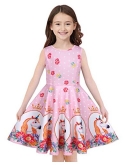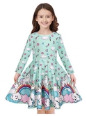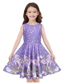 Quedoris Girls Dress Unicorn Printed Casual Party Twirly Dress for Kids in 2t to 9 Years
