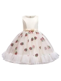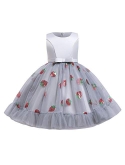 FIRST COMMUNION GOWNKids elegant birthday party hosting performance dress romantic stary shiny fluffy tulle tutu dress, sleeveless bodice neat tailoring design, with shiny sequins luxury strawberry pattern on the hem,Decorated with ribbon bowknots at front and back waist, unique design tulle stitched at hem edge, looks beautiful and charming,The hem consists of 6 layers, included 3 layers tulle, 1 layer satin, 1 layer hard mesh and 1 layer cotton lining, looks very fluffy