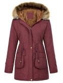Faux fur trim, solid color, fixed hood, adjustable waist drawstring