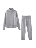 FEATURE : High collar sweater and mink cashmere pants loose style two-piece set knit