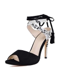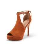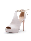 These Stunning Stilettos Heel Sandals Features Lace up Ankle Strap Fastening, Open Side Cutout, Peep Toe, with Black, White, Brown, Beige 4 Color Choice, Platform Front Desigh Make You Comfortable To Wear.