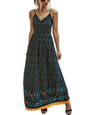 FeatureWomens Summer Dress/Maxi Dress/ Womens Floral Dress/ Sleeveless/ Adjustable Spaghetti Straps/ Sexy V Neck/ Ruffle at V neck side/ Floor Length/ Ankle Length/ High Waist Dress/ Elastic Dress/ Pleated at the bottom/ Bohemia Style Dress/ Beach Dress/Party Dress/ Long Dress for Women Size Selections: S,M,L,XL,XXL/ Color Selections: Navy, Apricot, Wine Red, Red, Green, Dark Blue, Black