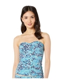 Strapless tankini top features twisting at the bust and shirring on the front torso for flattering texture.