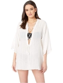 Flowing tunic with deep V opening with lace string detail.