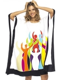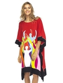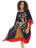 Sewn sleeves provide coverage as a swim or bathing suit cover up at the beach or pool, a caftan mini dress or tunic over leggings or jeans
