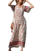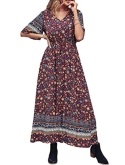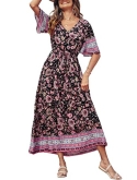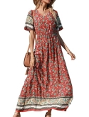 Features: Maxi dresses for women features bohemian floral print, v neck, short flare sleeves, flowy and casual style, high waist with adjustable drawsting, maxi long length, Relaxed, feminine and so comfortable summer dress to hold on to.
