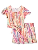 Set includes flutter sleeves tie front top and flowy short skirt Attached shorts Perfect tween, 7-16 skirt set Go to the Speechless store for full assortment - amazon.com/speechless Rise style: Mid