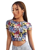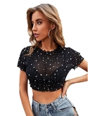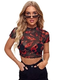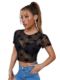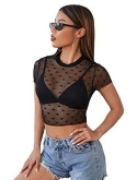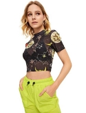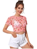 Heart print, sexy sheer top, slim fit crop top t shirt