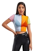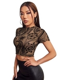 Short sleeve, mock neck, see through mesh blouse