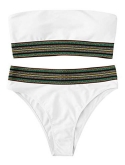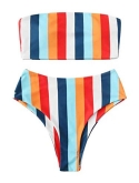 Features: Bandeau, stripe, pading bra, high waist, two piece swimsuits.