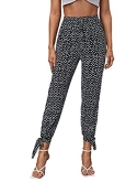 Split thigh cropped pants, knot hem pants, drawstring waist pants, elastic waist harem pants