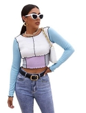 Ribbed knit top, crop top for women, color block crop top t-shirt, cute crop top
