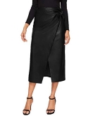 Seft knot tie midi skirt,wrap design,zipper closure,easy to dress up or down