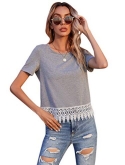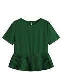 Round neck, short sleeve, scallop trim, pleated hem, peplum shirts.