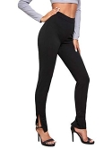 Feature: elastic waist, high waist, skinny, split hem, fabric has some stretch