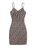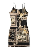 This short cami dress features graphic print, v neck and spaghetti strap