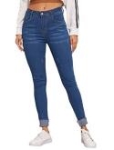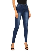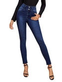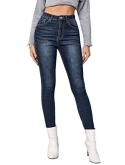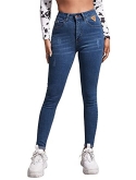 Button front, pocket, zipper, dark wash, high waist skinny jeans