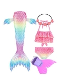 Best gift for 5-13 years old kid: Girls cute kids girls Mermaid Tail costume, suits from 5 -13 years old girls. Great choice for beach holiday, pool party, swimming, cosplay, photo, carnival, theme party and Purim. The fabric swimming suit appears to be real mermaid fish scales, every girls mermaid dream will come true.