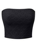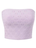 Easy like Sunday morning in this strapless smock crop top. A lettuce edge crop top featuring an elastic band that hugs gently along your chest for a comfortable fit. It's a strapless tube top to carry you through delightful sunny days.
