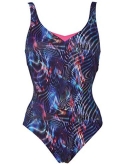 Tummy control and modest leg height Seamed bra Adjustable straps Sensitive fit fabric offers supreme comfort and chlorine resistance The wing back allows movement while being flattering