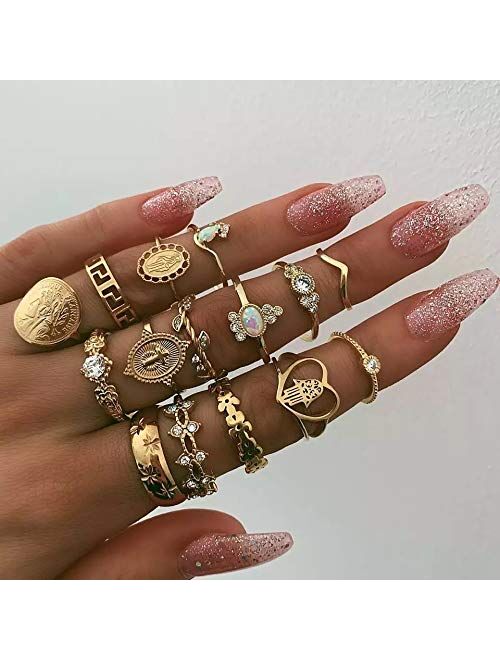 Pack of Rings---82pcs knuckle rings,solid colors, hallow carved flowers, crystal-set, carvings, stones-set, etc. The rings contain gold and silver to make your mix more diverse. Kinds of styles can adapt to a variety of outfits and occasions.