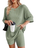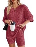 Design : Half Sleeve Two Piece Outfits, Ribbed Short Sets, Drop Shoulder Lounge Sets, Crew Neck T Shirts + High Waist Biker Shorts Set, Casual Active Tracksuits, Soft Athletic Clothing Sets.