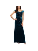 Graceful details make up this stunning gown. The stretch velvet is rich in color and has a flattering off the shoulder neckline. Add your favorite heels and you'll be best dressed at this year's holiday party!