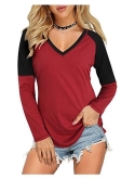 Unique Design: Long Sleeve tunic, v neck, color block shirt, comfortable and casual