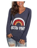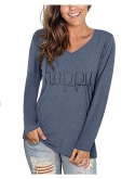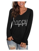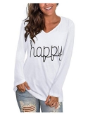 Design:happy letter print, rainbow print, long sleeve shirts, v neck, casual, stylish and classic look