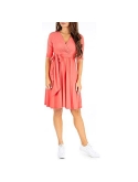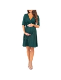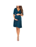 Half sleeve, faux wrap maternity V-Neck wrap dress with belt made from high-quality, long lasting materials designed with style and comfort in mind through all stages of pregnancy. Excellent for nursing and any occasion such as baby showers, weddings, cocktail parties, family gatherings, or formal events.