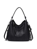 Satchel Handbag for Women, Ultra Soft Washed Vegan Leather Crossbody Bag, Shoulder Bag, Tote Purse (CA-0118#K022#1ABLACK)