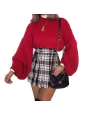The Chic Chunky Knit Sweater Tops features the long puff sleeves can hide your thick arms and create a slouchy style.