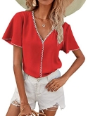 Feature: Short Sleeve, V Neck, Plain, Contrast Binding, Casual Top