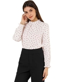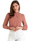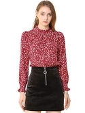 Ruffled Stand Collar, Puff Long Sleeve, Smocked Cuffs, Keyhole Back, Button Loop Closure at Back, Floral Printed Tops