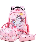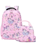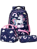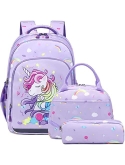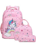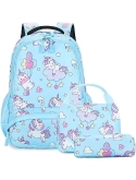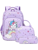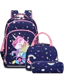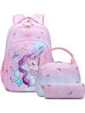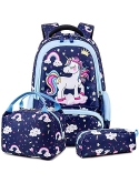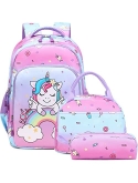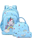 Girls School Backpack 3 in 1 Set - Backpack for Kids Girls Size:11.8"x 6.2"x 15.7"(L*W*H), Unicorn Lunch Bag Size:10.6"x 6.3"x7.4"(L*W*H), Unicorn Pencil Bag Size: 7.9x 2.4x2.4(L*W*H). Personalized unicorn printing is brilliant and eye-catching, children will love it, it's a perfect unicorn backpack for girls, preschool bookbag, kindergarten backpack, primary school backpack.
