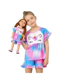 Unicorn Outfit for Girl & Doll--Unicorn pajamas set features in attractive colorful unicorn patterns, the ruffled sleeves and pants look super cute, specially for little kids' unicorn fantasies.