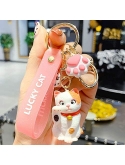 ZEXIN New Cute Lucky Cat Keychains Car Key Accessories Bag Decoration Keyrings Cartoon Lovely Cat Keychains Pendant(White)