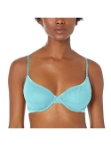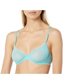 Seamless underwire cup. New shiny elastic details. Adjustable straps. Double mesh side slings. Sheer delicate Italian power mesh. Hook and eye closure at back. Made in Italy.