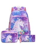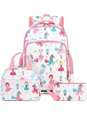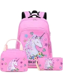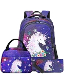 Quantity: 3 pieces, Including Girls unicorn backpack + Insulated Lunch tote bag + pencil pouch, All bag are printed a fairy unicorn, large capacity, multiple pockets, fits 14"laptop/ Mac and accessories, 3" binder/folders, school textbooks and supplies, etc.