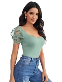 Puff short sleeve, polka dot print, contrast mesh, low back