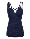 Women's V Neck Criss Cross Tank Tops Summer Sleeveless Wrap Cami Casual Blouse Shirts