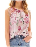 Material95% Polyester+5% Spandex, Lightweight and soft. Chiffon blouse for women,sexy sleeveless, pretty lace trim, floral printed, sleeveless shirts, casual style and loose fitting.